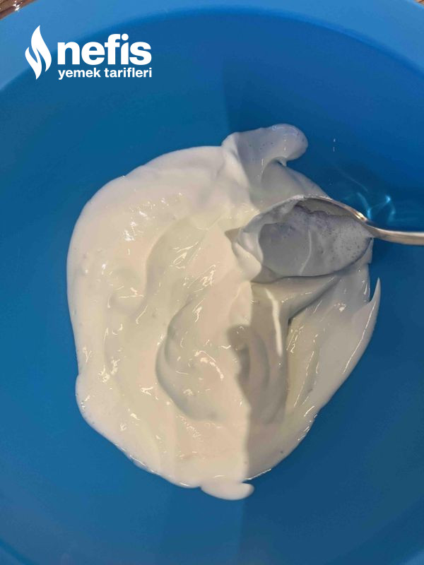 - Bir kasede tuz ek edip, sarmısaklı yoğurt hazırlayalım.