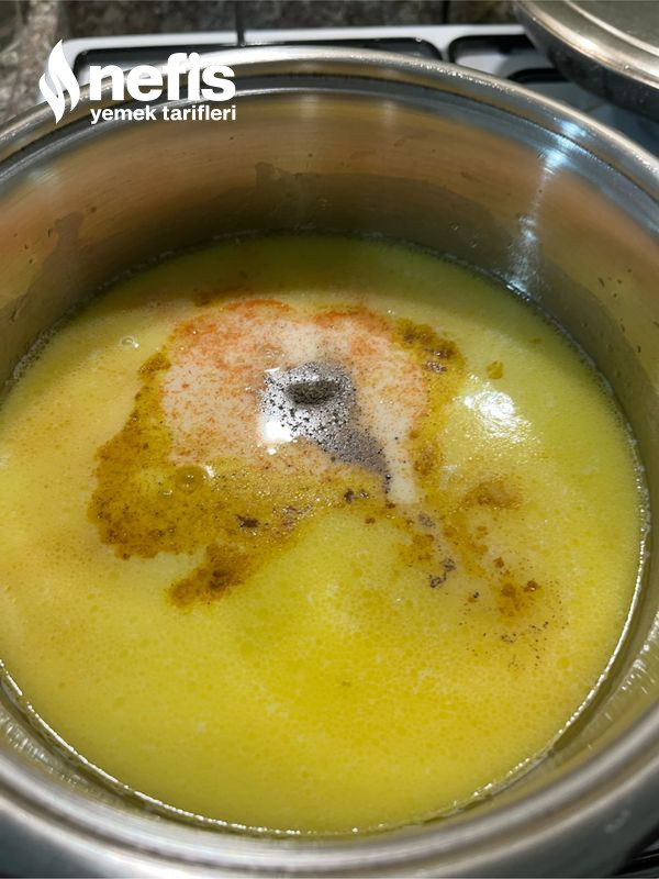 - Az sulu kaldığı vakit labne ve kaşar peynirimizi ekleyelim karıştırmayalım.