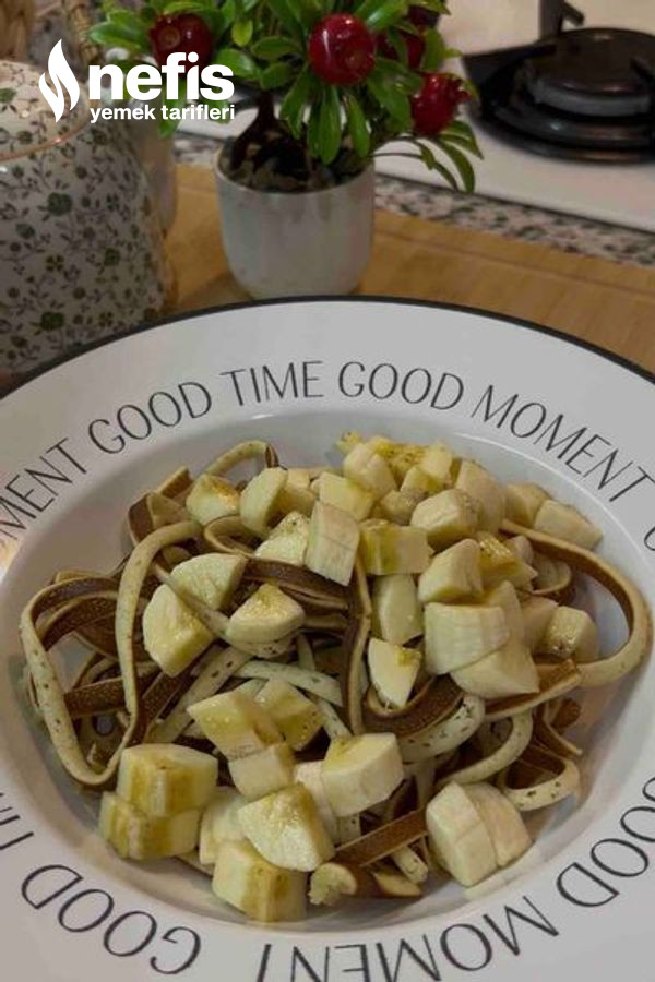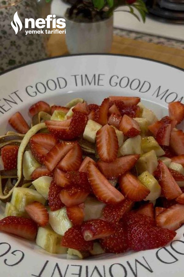- Sonra üzerine dilediğiniz meyveleri serpin. Ben çilek ve muz kullandım.