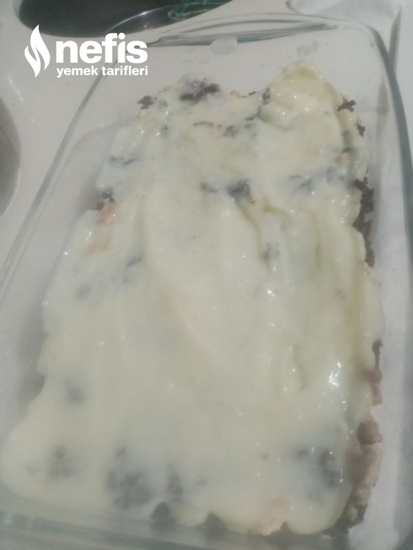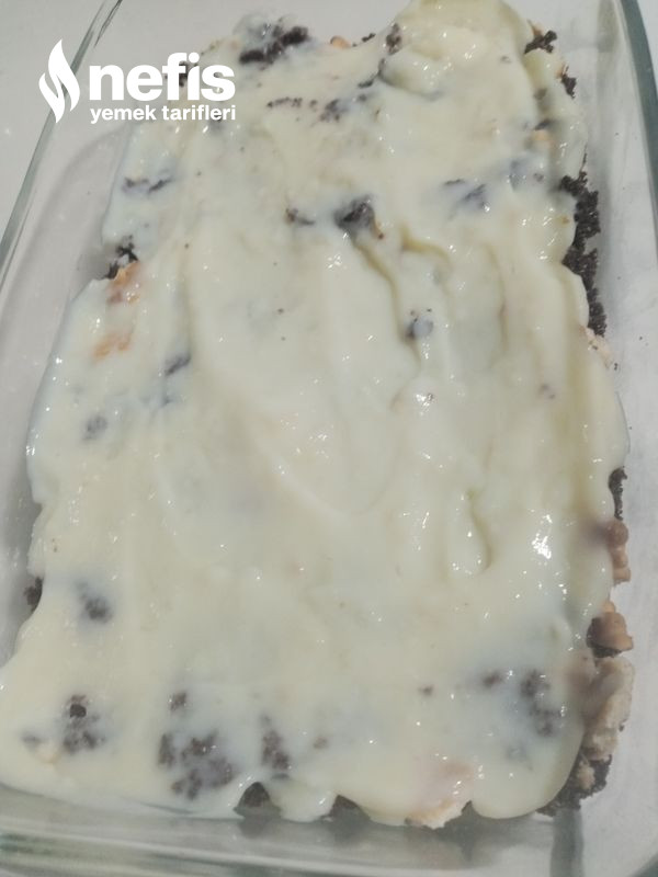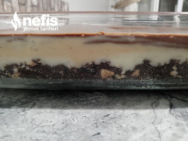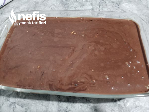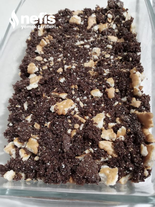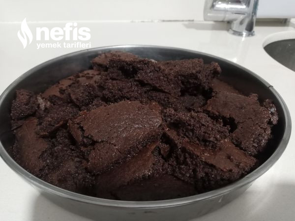 - Kek soğuduktan sonra ufalanır içerisine bisküviler kırılıp harmanlanır orta uzunluk borcama konur elimiz ile bastırılır.
