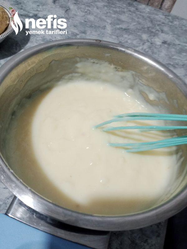 - Krema için sütü, nişastayı ,unu ,şekeri ,yumurtayı ekleyip karıştırarak pişirilir.