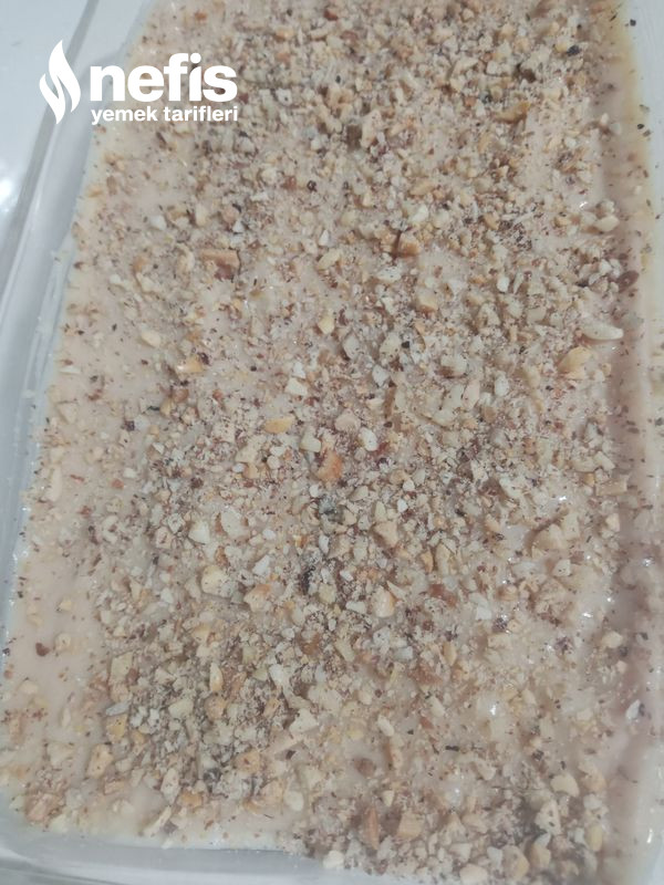 - Biraz üzerine yarım çay bardağı kadar süt gezdirilir yarım çay bardağı ceviz de üzerine dökülür.