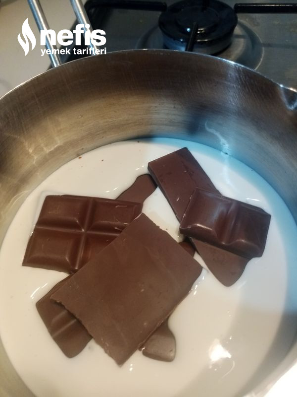 - Sıvı krema küçük sos tenceresine alınıp ocağın üstüne konur çikolatalar içine konur ,krema kaynama noktasındayken indirilip borcamdaki kremanın üzerine dökülür.