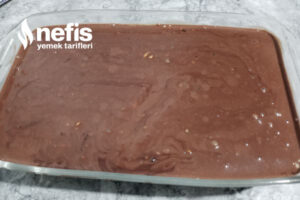 - Pişen krema ılıyınca yarısını borcamdaki kekin üzerine dökülür yarısına da 2 yemek kaşığı süt reçeli eklenir onu da beyaz kremanın üzerine dökülür.