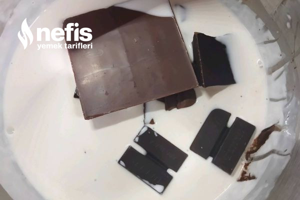 6. Ganajı için kremayı bi tencereye alın kaynamaya yakın ocağın altını kapatıp çikolataları ekleyin eriyene kadar karıştırın ,güzel bir kıvama gelince kremanın üzerine dökün ve yayın.