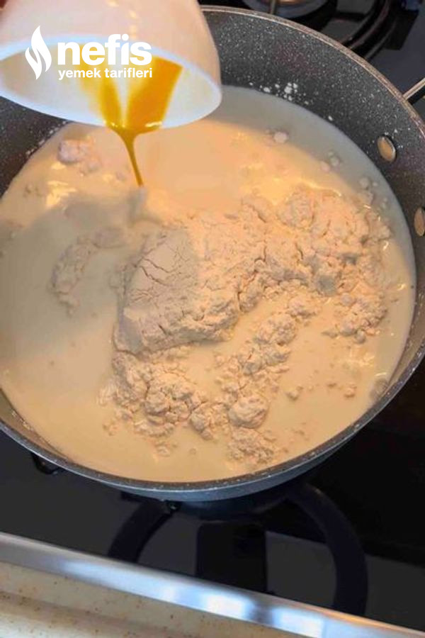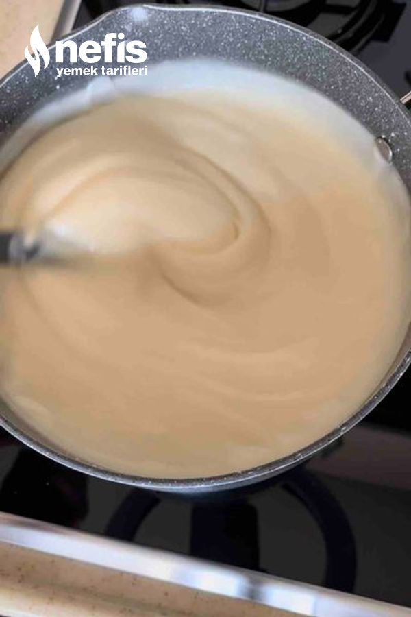 - Süt, un, nişasta, yumurta ve şekeri uygun bir tencerede kıvam alana kadar daima karıştırarak pişirin.