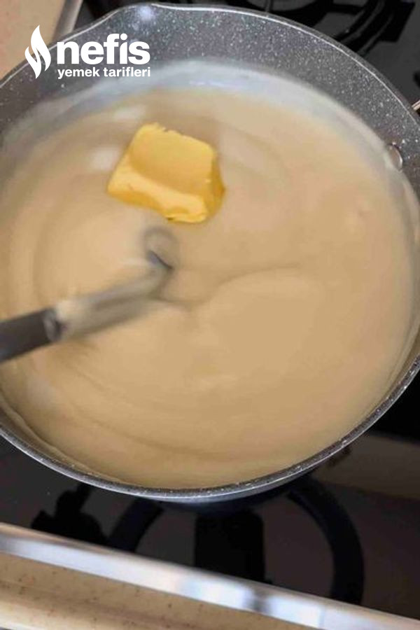 - Muhallebi yoğunlaşıp göz göz olunca tereyağı ve vanilyayı ekleyin.