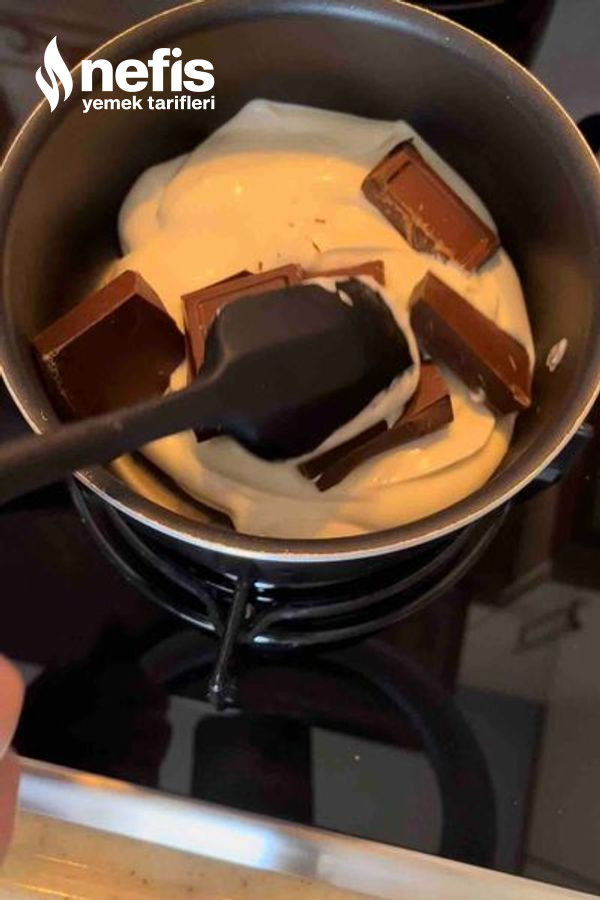 - Çikolatalı krema için; küçük bir tencereye sıvı krema ve çikolataları ekleyin. Daima karıştırarak çikolatanın ergimesini sağlayın.