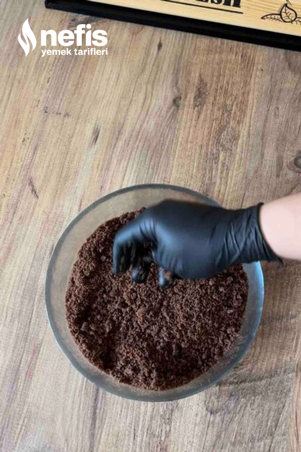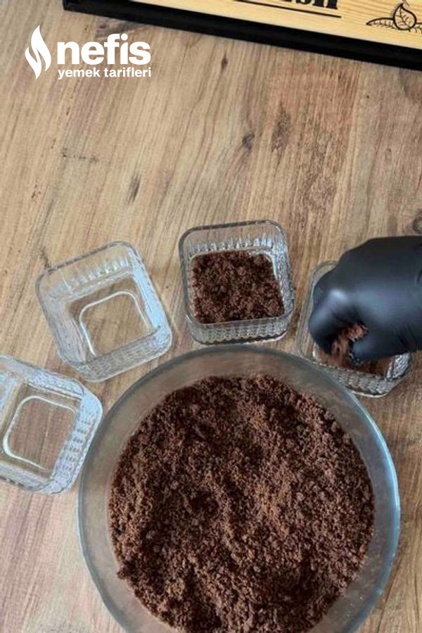 - Keki elimizle ufalayıp uygun kaplara paylaştırın. Üzerini kaşık yardımıyla düzleyip kremadan koyun.