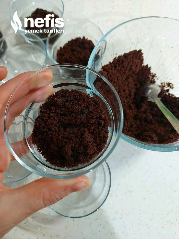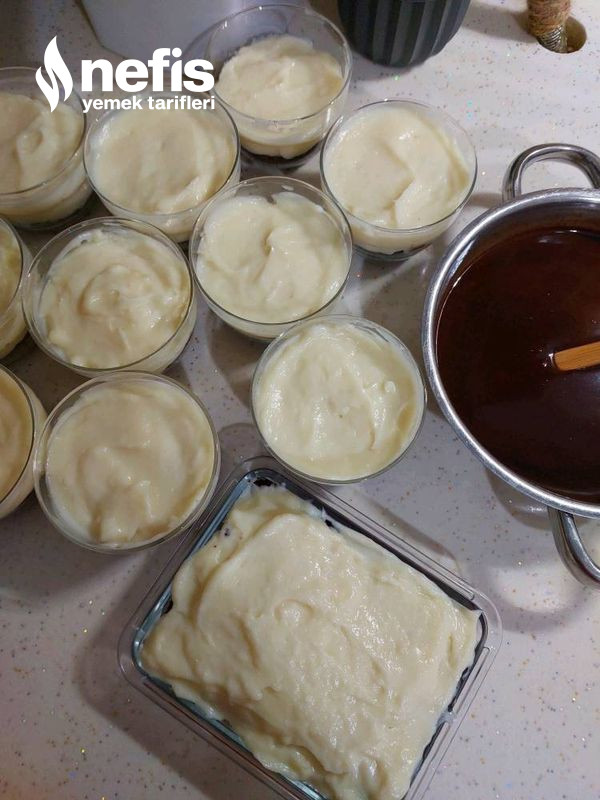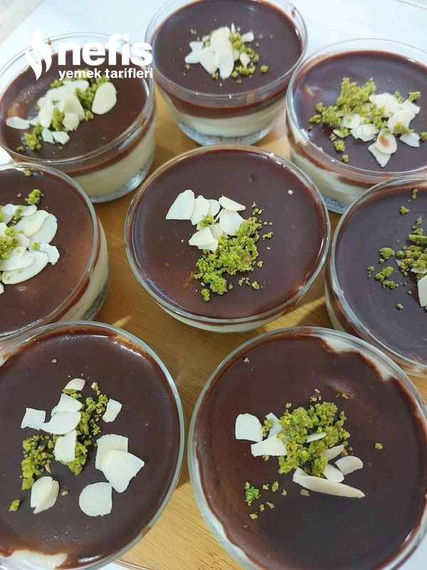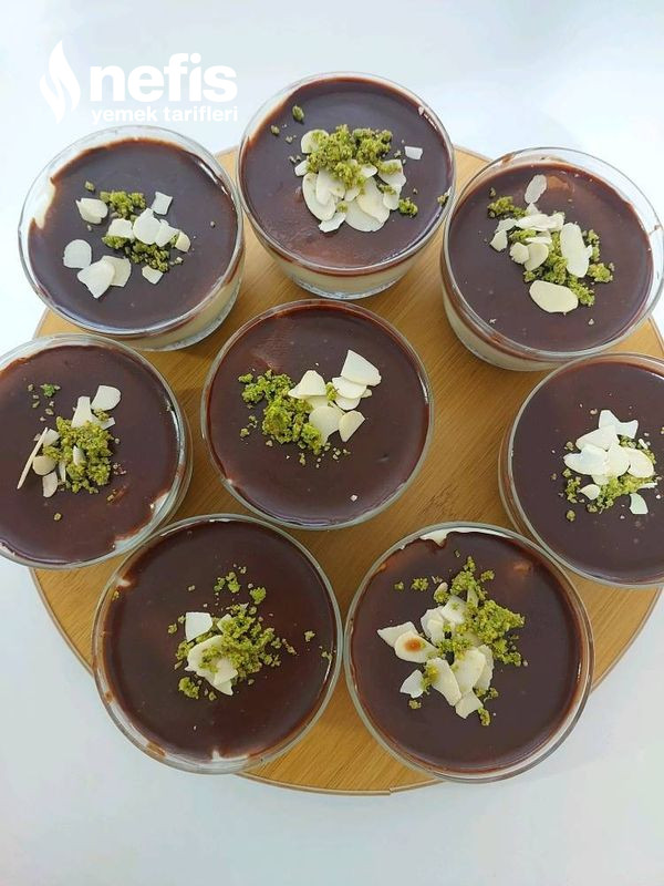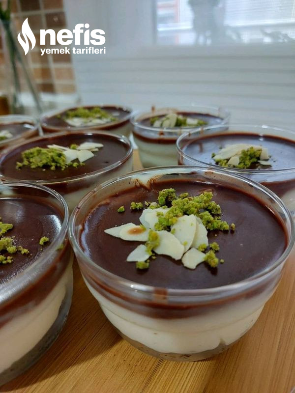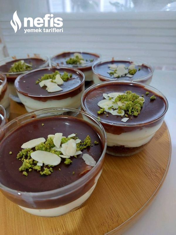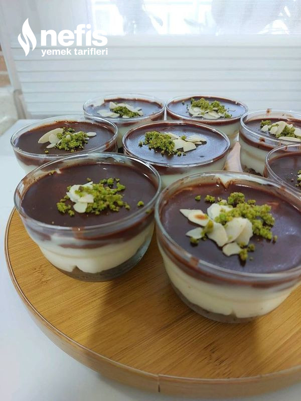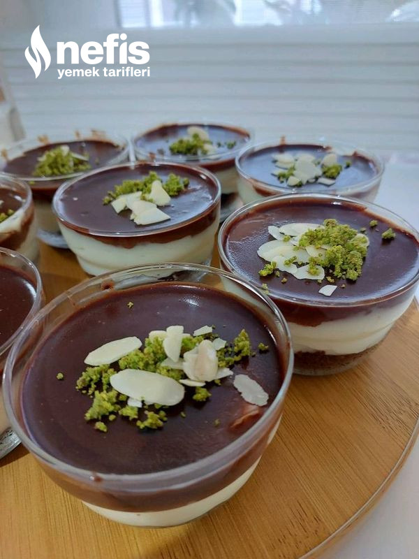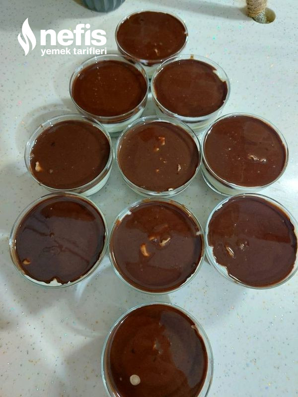 - Üzerine hazırladığım soğumuş kremayıda kaselere hisse ettim en son çikolatalı ganajı döktüm akabinde dinlenmesi için buzdolabına koydum .