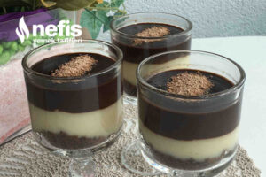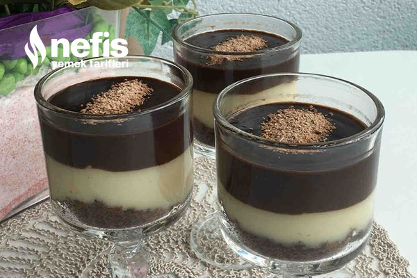 5. Benmari tarzı eritmiş olduğumuz çikolatayı yahut yapmış olduğumuz çikolata sosunu muhallebinin üzerine döküp soğumasını bekleyelim.