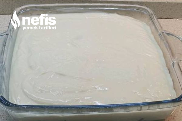 - Üzerine ılıyan muhallebimiz dökülür.