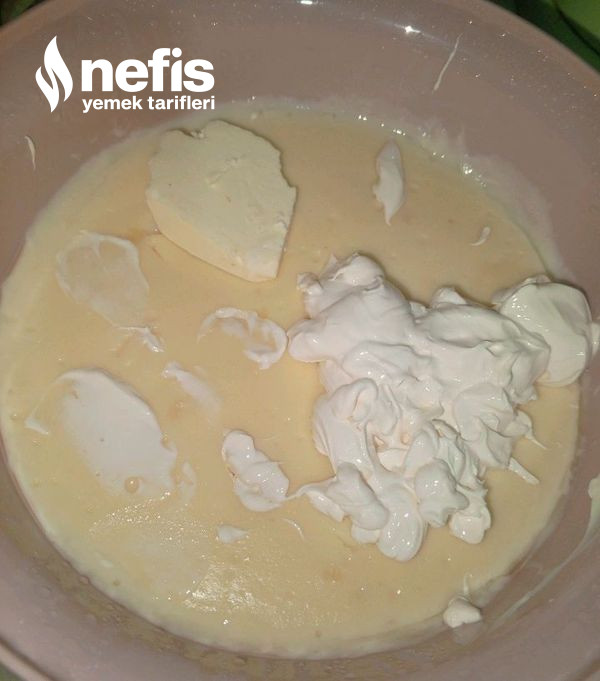 - Ardından, dinlenen harcın içine tereyağı ve kremayı dökerek mikser ile düzgünce çırpın.