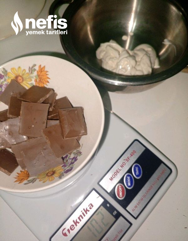 - Kekin üzerine krema dökün 1 saat buzdolabında dinlendirin. (dinlendirmeden çikolata sosunu dökerseniz yüzeyde beyaz beyaz görünecektir)
