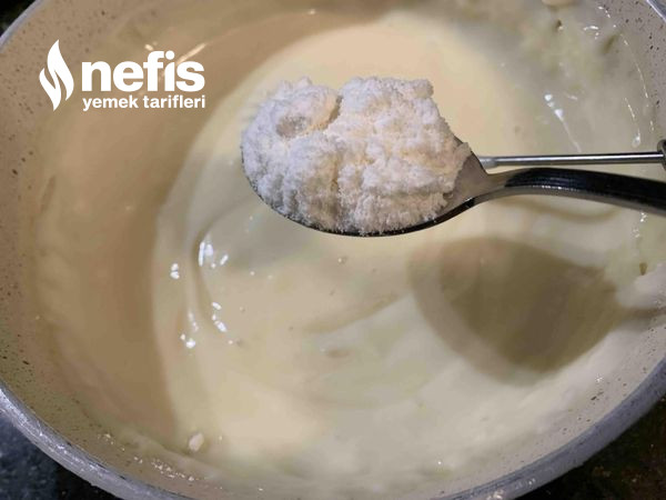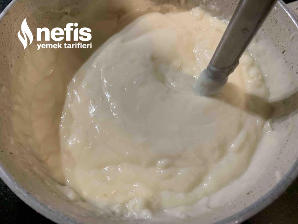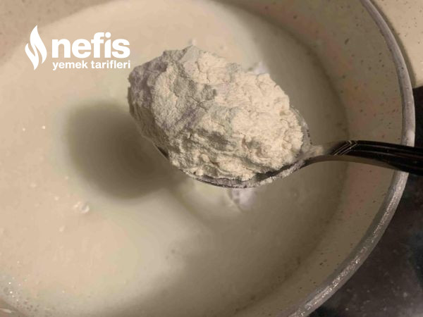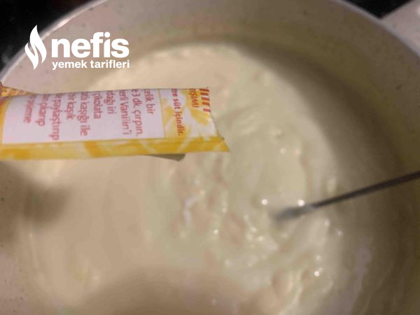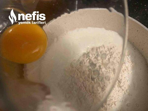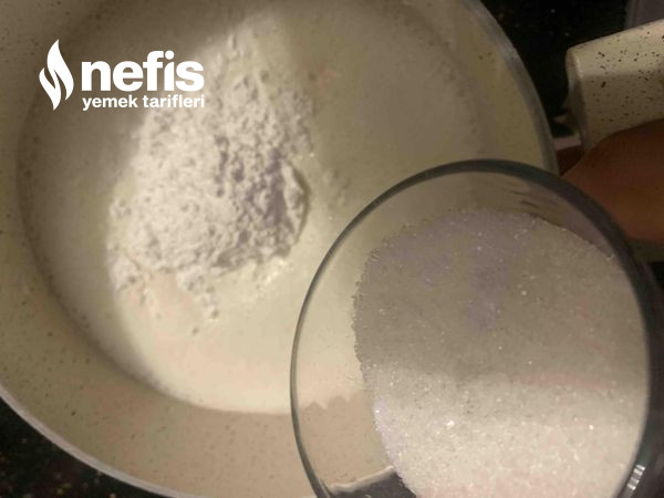 - Öncelikle tenceremize süt,şeker,nişasta,un ve yumurta sarısını alıp karıştıralım ve ocakta yoğunlaşana kadar pişirelim.
