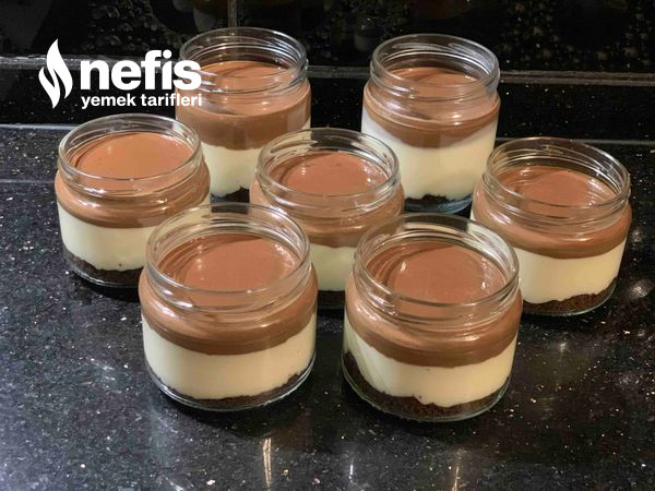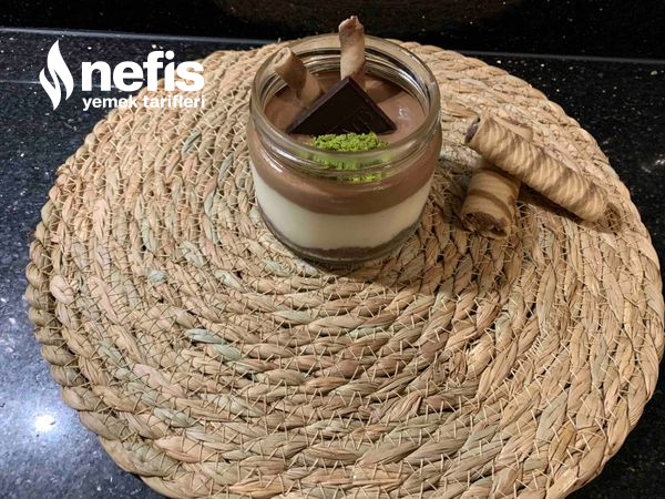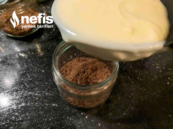 - Çikolata sosumuzu da yeniden eşit bir halde muhallebilerimizin üzerine paylaştıralım.