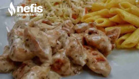 - Son olarak sos tavasına kremamızı alıp ısıtalım ve ocaktan alalım.