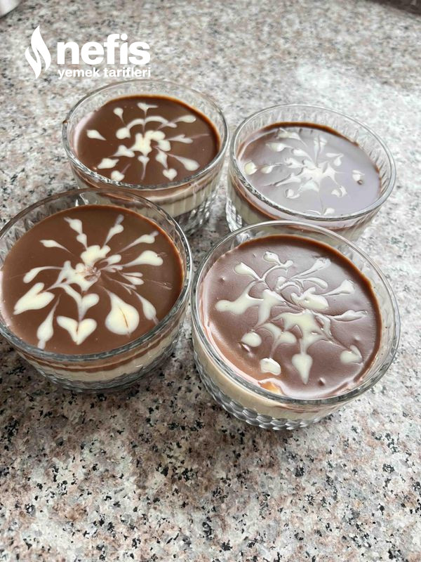 - Kabımızın en alt katına kek, üstüne krema onun üstüne çikolata sosunu dökelim ve üzerini dilediğimiz üzere süsleyelim.