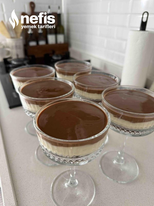 4. Ganaj için; kremamızı göz göz olana kadar pişirelim çikolatalarımızı ek edelim eriyene kadar karıştıralım. Soğuduktan sonra kâselere paylaştıralım.