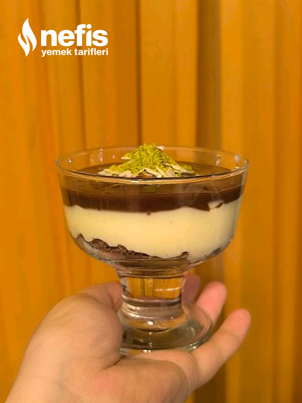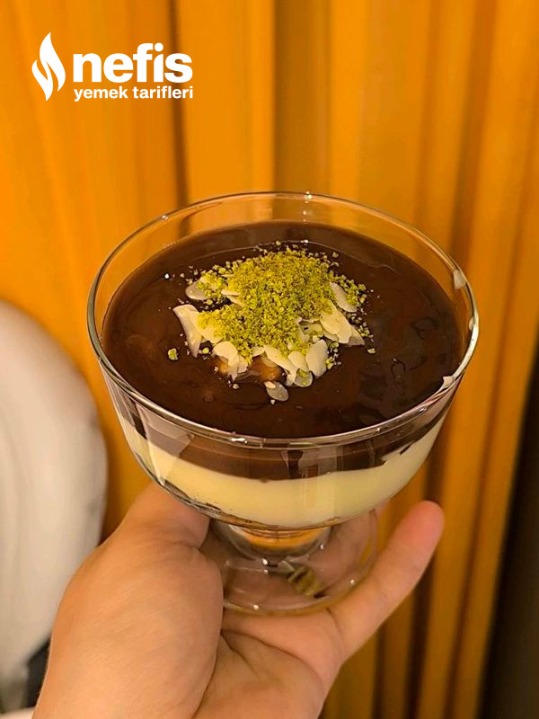 5. Kaplara ufaladığımız kekleri hisse edelim. Üstüne muhallebiyi dökelim ve en son üstüne yaptığımız ganajı dökelim.