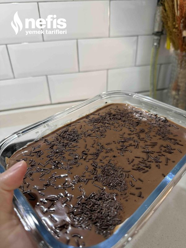 - Kullanacağınız kaba kakaolu keki alıp ufalayın bardak ile düzelttin kremayı ekleyip yayın.