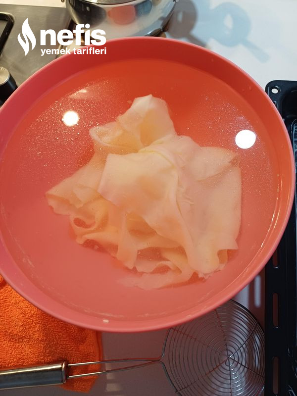 - Haşlanan yufkayı soğuk suyun içine atıp, 2-3 dk bekletelim.