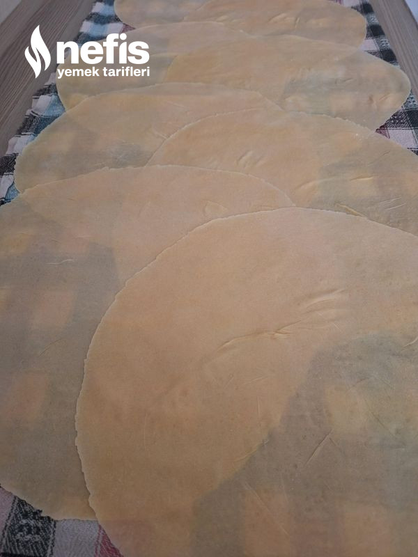 - 2 yufka daha serilir ve haşlanmamış son yufka duz bir biçimde üzerine serilir.