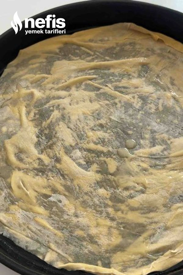 5. İlk yufkayı haşlamıyorum en alta yağ sürüp üzerine haşlanmamış yufkayı serdim sonra fırça yardımıyla yağ gezdirdim.