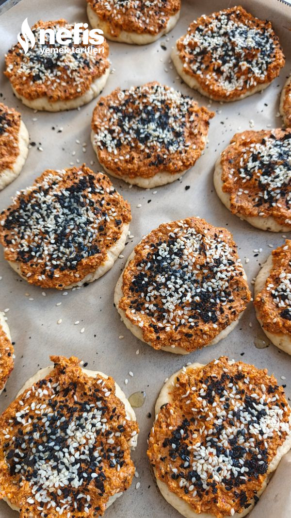 - Son olarak hamurun üzerine, göz kararı,susam, çörek otu,isot biber,serpelim.