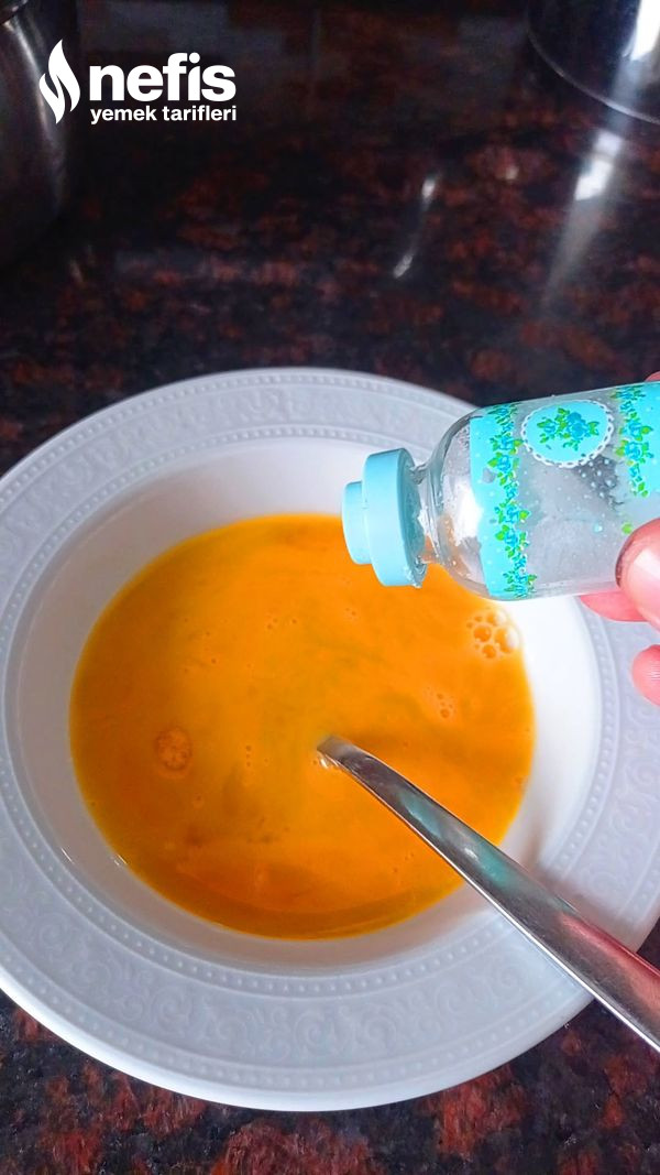 - Daha sonra farklı bir yerde yumurtaları çırpalım ve içerisine tuz ekleyip karıştıralım ve kızaran sucukların ortalarına ve üzerine dökelim.