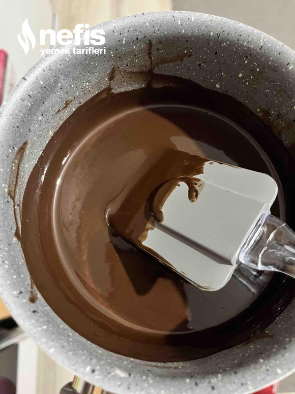 - Eriyen tereyağının altını kapatıp üzerine çikolatalarımızı ekliyoruz, ben bitter çikolata kullanıyorum isteyen damak zevkine nazaran sütlü kullanır.