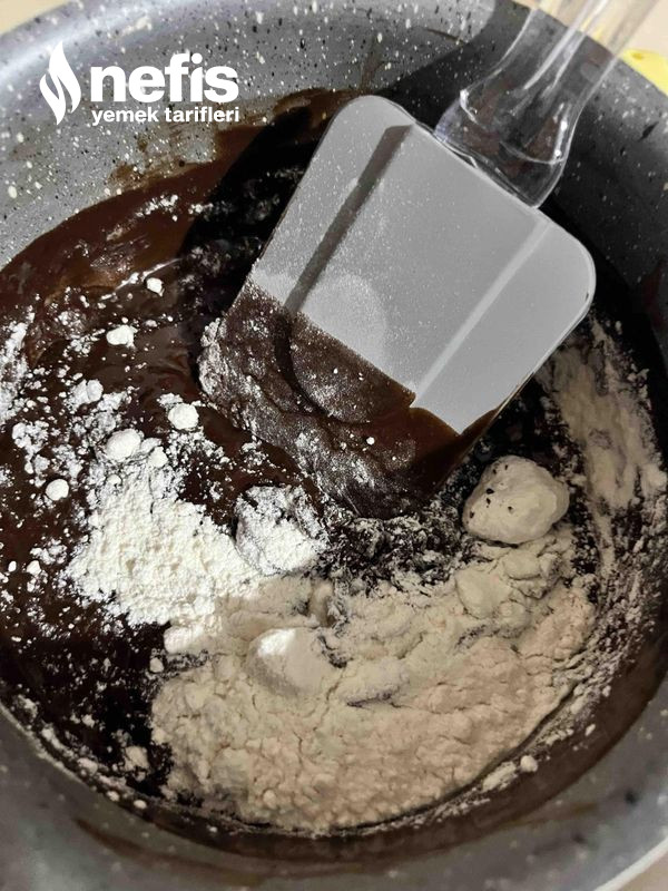- Çikolatalar eridikten sonra unu da üzerine ekliyoruz.