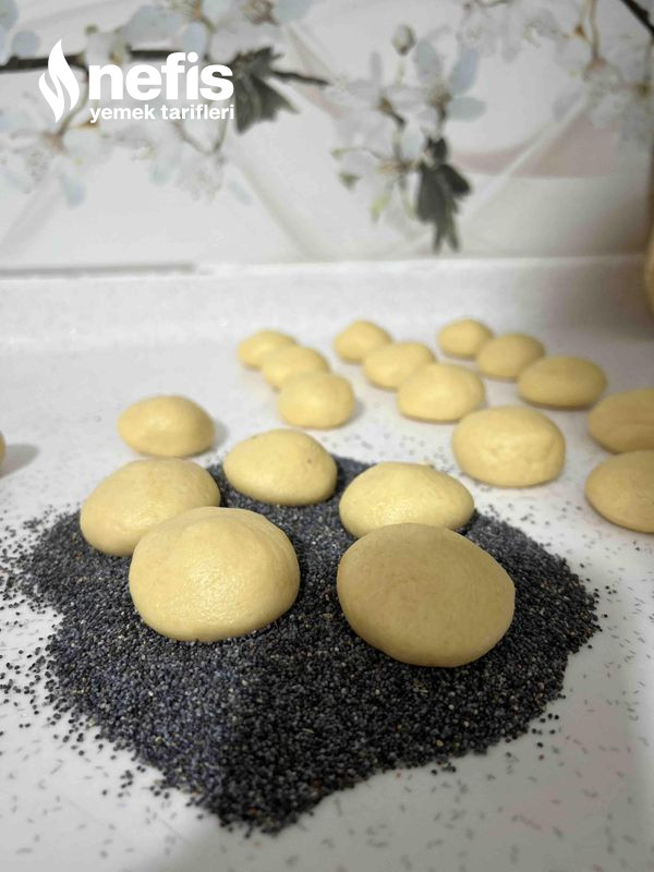 3. Hamurdan ceviz büyüklüğünde alıp avuç içinde yuvarlayalım haşhaşa bulayıp üzerine de cevizi ekleyip fırın tepsisine düzelim 170 dereceli fırında hafif pembeleşmesi kâfi.