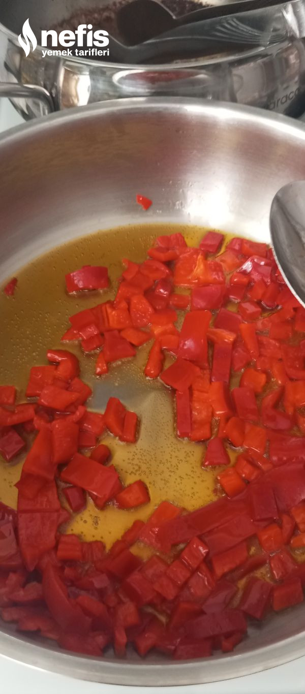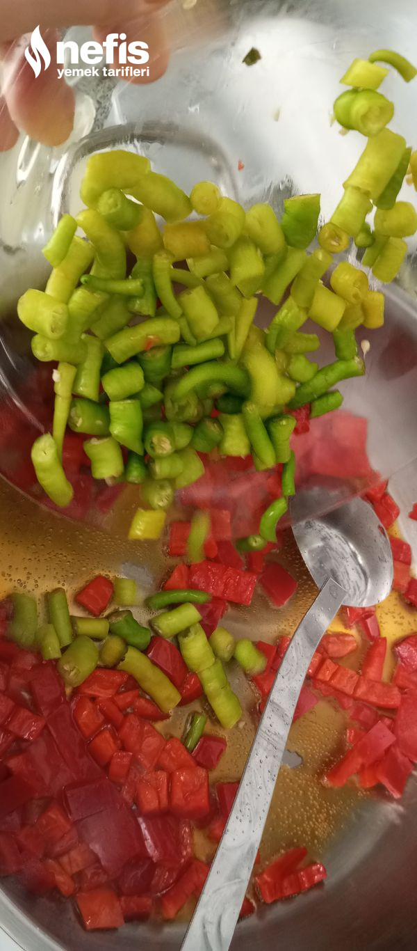 3. Kapya biberlerin dirliği geçince üzerine doğranan öbür biberler eklenir.