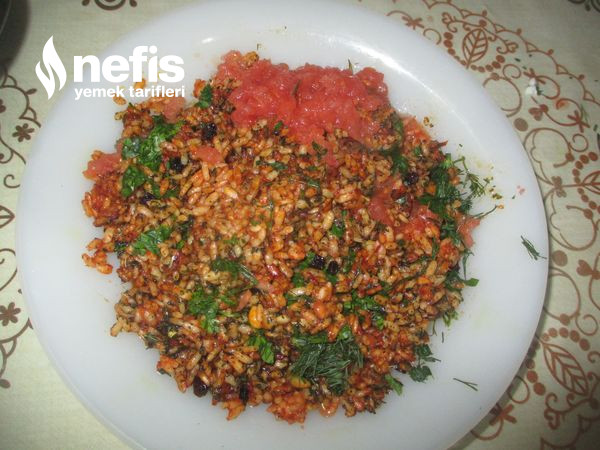 - Kısık ateşte suyunu çekene kadar pişirelim sonra, bir tabağa alalım ince kıyılmış maydanoz, dereotu, kuru nane serpip karıştıralım.