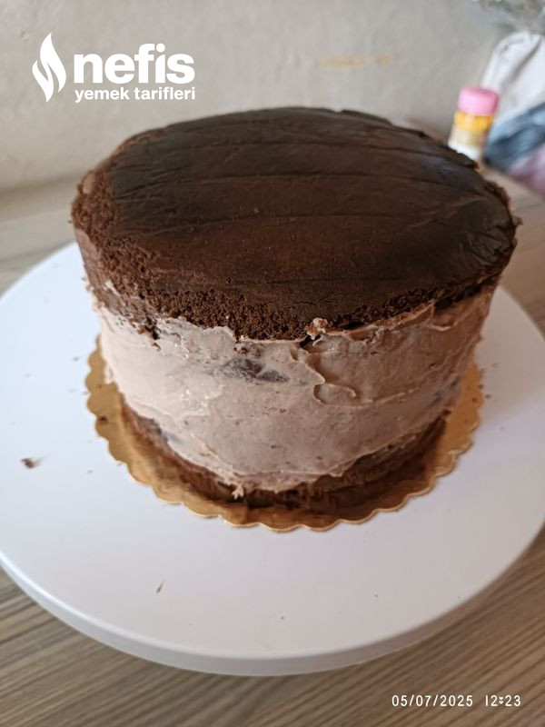 - Üstüne 2 pandispanya kapatıp tekrardan birebir halde sütle ıslatıp krema muz ve çikolata parçacığı ekleyip üzerine yeniden bir kesim krema ekleyip, son pandispanyamızı koyup sütle ıslatıp bir gece dolapta streç sinemayla kapatarak bekletelim hava almayacak biçimde kapatılacak.