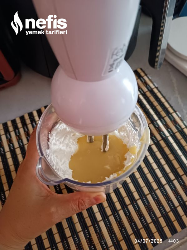 - İyice soğuduktan sonra kremşantiyle streçlediğimiz kremayı birleştirelim mikserle düzgünce çırpalım beklesin.