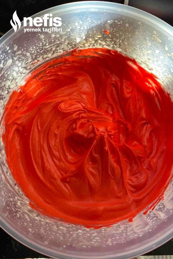 2. Diğer yandan kremşantimizi yapıyoruz biraz çırpıp kıvam aldıktan sonra besin boyamızı döküp düzgünce çırpalım dilerseniz en az yarım saat dolapta dinlendirin kıvamının sulu olmamasına dikkat edin.