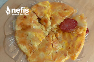 - Yumurtanın pişmesine yakın üzerine sucuk ve kaşarları ek edip tavanın kapağını kapatıyoruz.