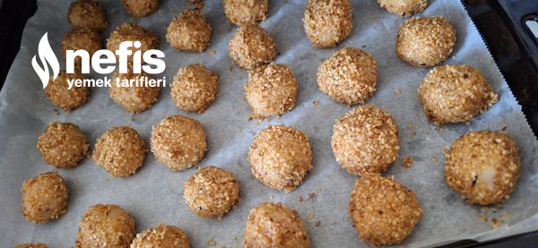 - Daha sonra biçim verip yumurta akına bulayıp daha sonra susama bulayıp tepsiye yerleştiriyoruz.