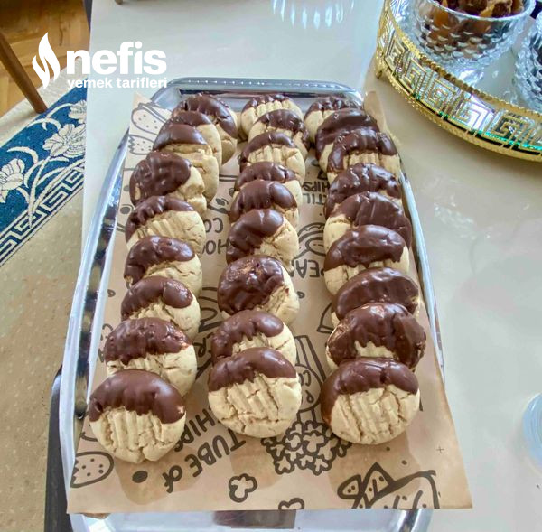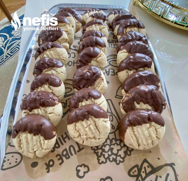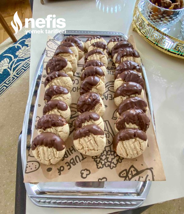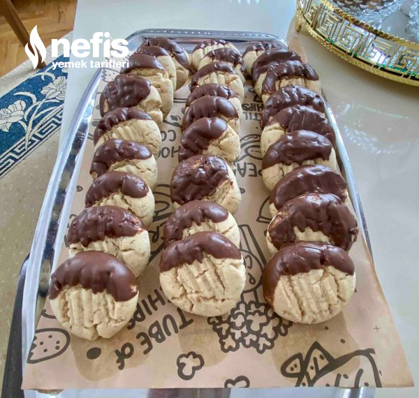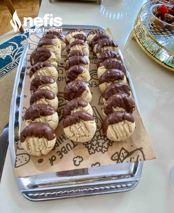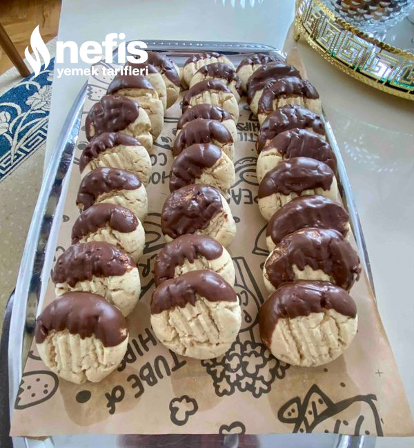 - Pişip, soğuyan kurabiyeleri benmari yolu ergittiğimiz çikolataya batırıp, servis ediyoruz. Afiyet olsun.