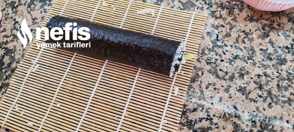 - Sushi sarımı için nori yaprağını bambu mat üzerine alın.