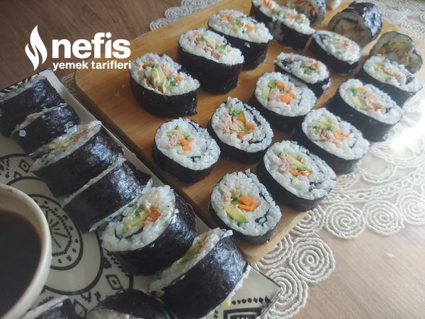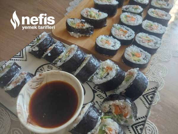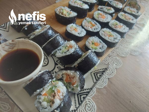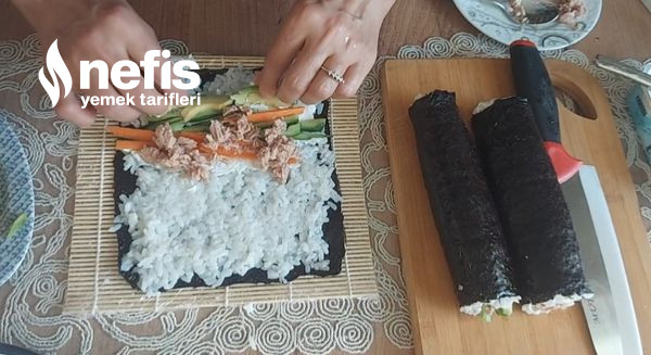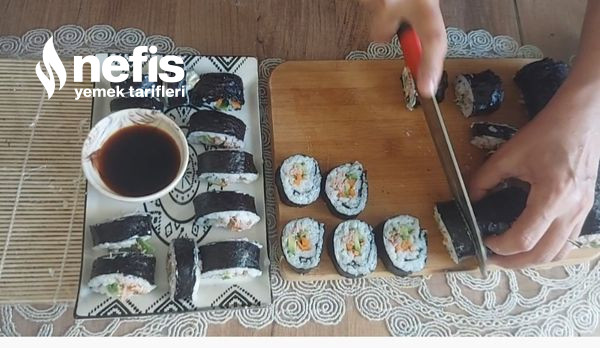 - Sıkı bir biçimde sarıp rulo yapalım birer parmak genişliğinde dilimleyip servis edelim bıçağı arda çok az ıslatın ,daha rahat kesiliyor isteğe bağlı soya sosu kullanabilirsiniz afiyetler olsun ayrıntılı tanım için tıklayınız 👇.