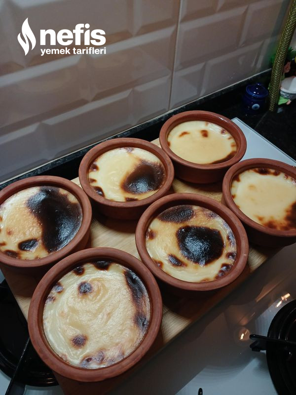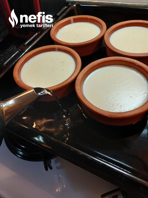 6. Toprak kaselere yahut orta uzunluk borcama süt helvamızı dökelim. Ben 6 adet toprak kase kullandım.
