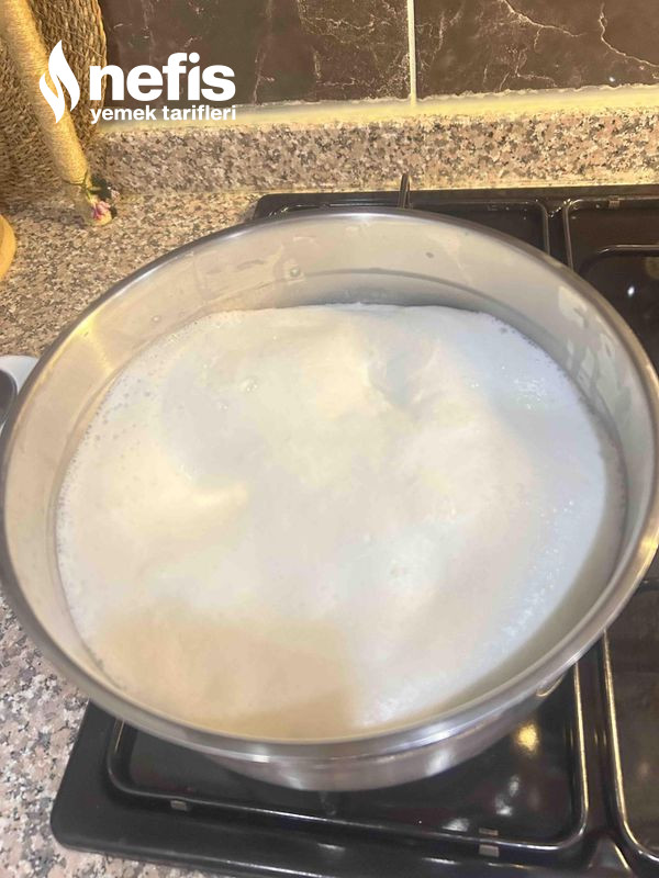 - Sütü çelik tencereye alıp, içerisine 2. 5 su bardağı su ek edip kaynamaya bırakıyoruz.