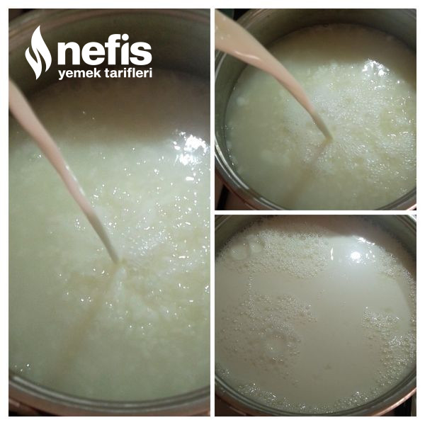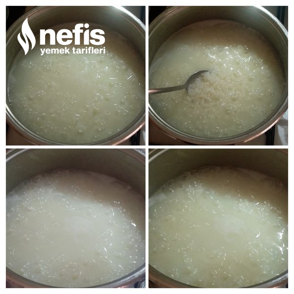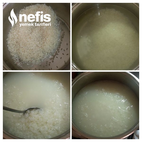 Not:Pirincin yıkanmamasını tavsiye ediyorum. Zira nişastası yıkandıktan sonra gittiği için kıvam almada zorluk yaşanacaktır ancak sizler dilerseniz sudan geçirebilirsiniz. Kaynama basamaklarında aralıklı olarak karıştıralım ki tabanı tutmasın ve pirinç yanmasın.
