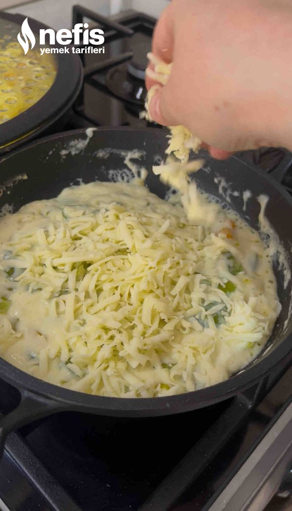 - Daha sonra süt ve tuzu ekleyerek yoğunlaşana kadar karıştırıyoruz.