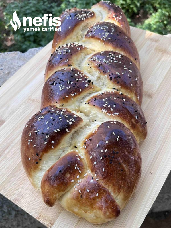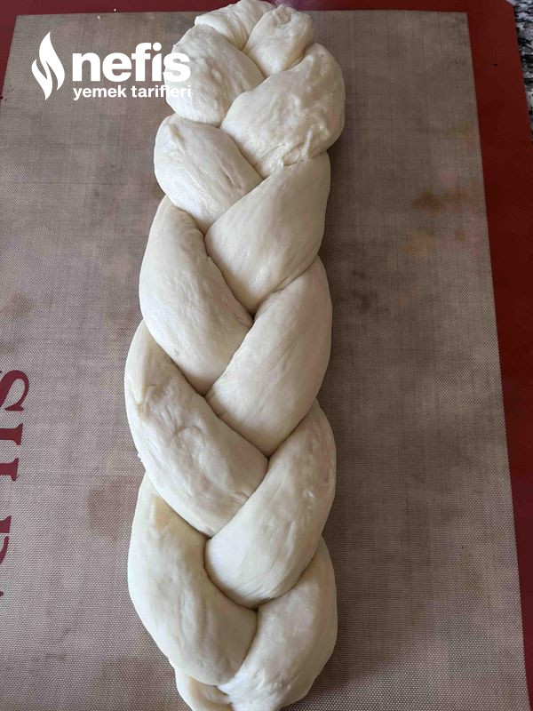 - Mayalanması için bekletin mayalanan hamuru 3 eşit modüle bölün ve her parçayı fitiller haline getirip saç örgüsü yapın tepsiye alın ve tepsi mayası için 20 dk üzerini örtüp bekletin.
