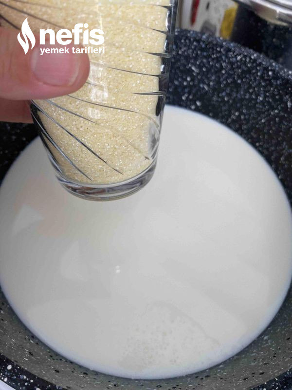 - Sütlü irmik tatlısı yapmak için öncelikle soğuk sütümüzü uygun bir tencereye alalım.