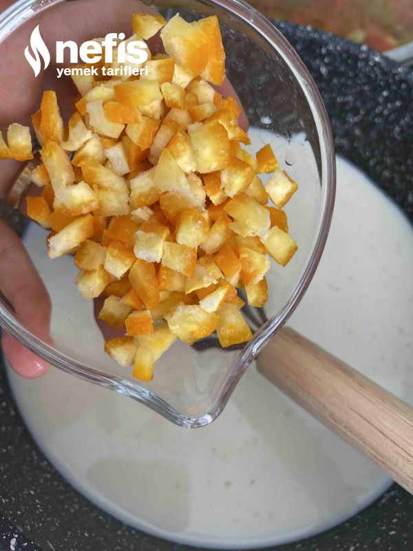 - Portakal kabuğunu küçük küçük doğrayalım ek edelim.